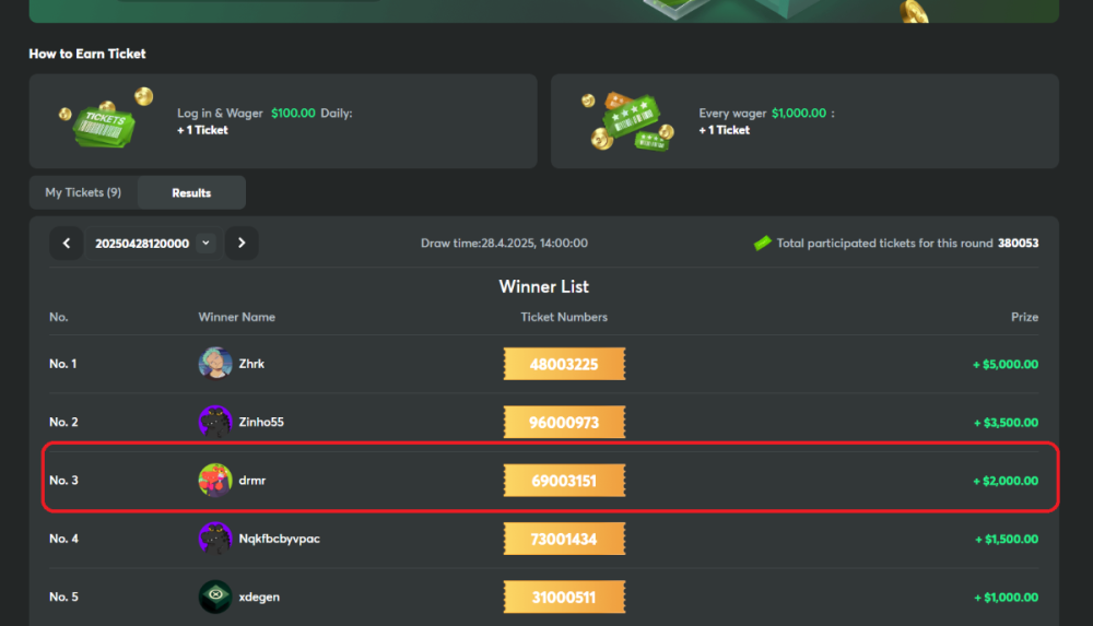 2. Hello Bc.game i realy need a Statement of you how this Guy is: -Account Level 37 -Wager Total: 713$ -has Favorite Games played only 1 shown with 0 wager on it! -Won the Weekly Raffle 2000$ as 3RD Place -Joined 10.1.2025 What is going on here??? i never Won the Raffle even with almost 1Mio Wager and you going to tell me he Won with 700$ Total Wager? i need a Statement Bc.game all looks like you forgot to set Hide my Stats!