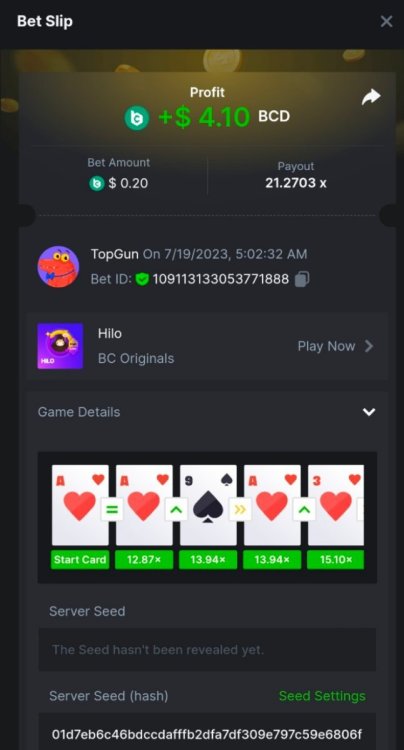 3. 9x, 15.5x https://bc.game/#/sd/11ELP47T3W61W3 https://bc.game/#/sd/11EITU79AAS3TZ