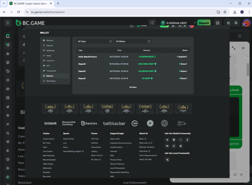 BC game wallet matches TX id, no transactions in the last 90 days is proof that its was scammed!